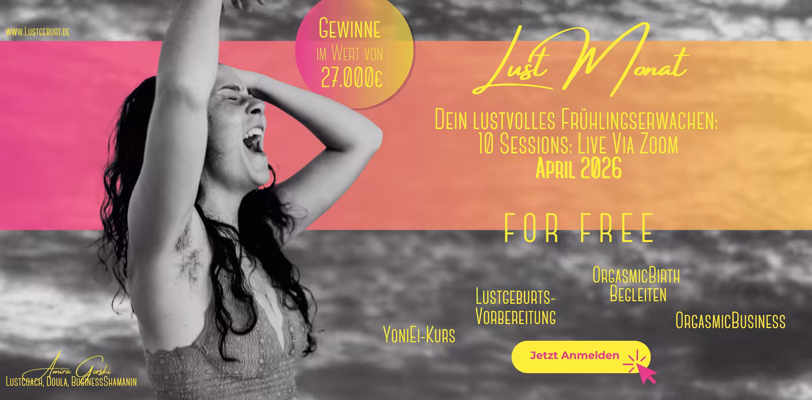Als Seminarleiterin, LustCoach und Lustgeburts-Doula folgt Amira Gorski ihrer Bestimmung, so viele Frauen wie möglich beim Erwachen in ihre weibliche Kraft zu unterstützen.