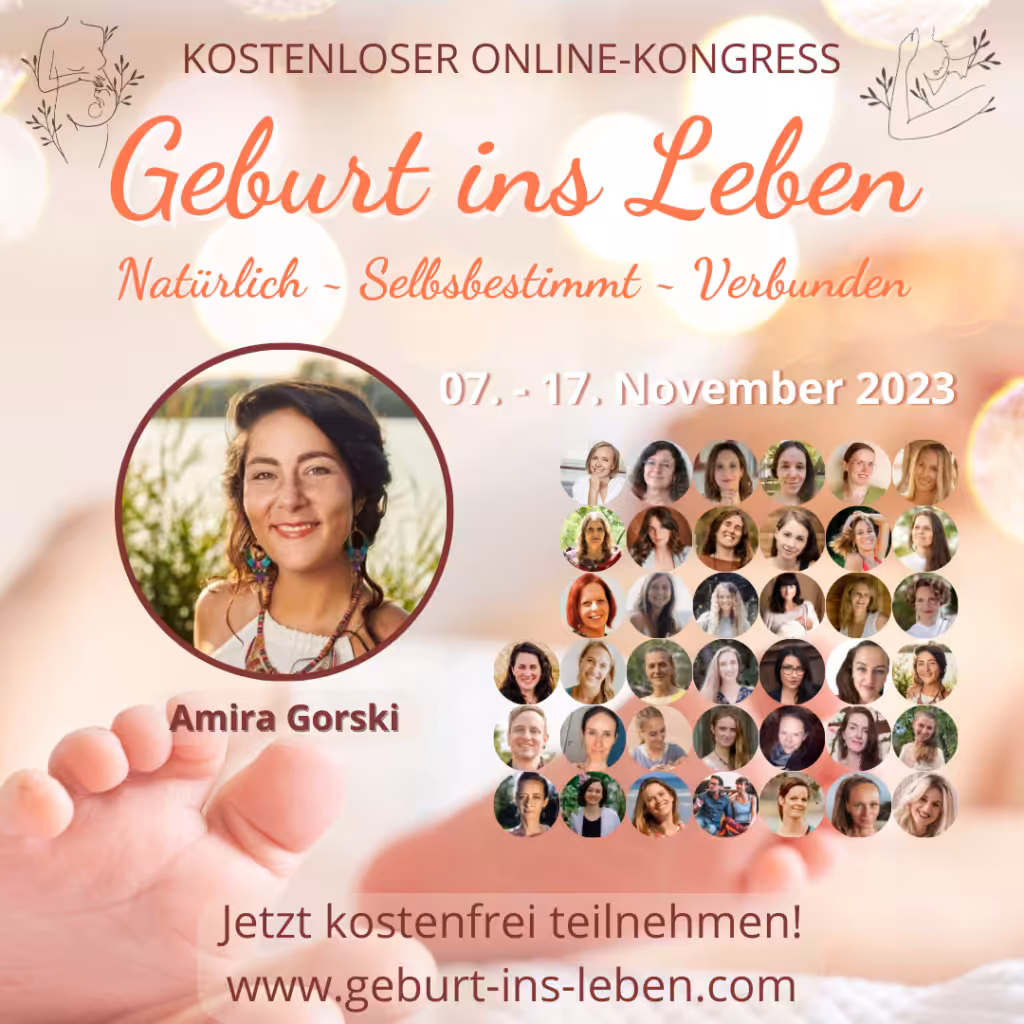 Geburt ins Leben – natürlich, verbunden, selbstbestimmt ~ Großer Online-Kongress rund um Schwangerschaft, Geburt und die ersten Kinderjahre 07.-17.11.2023 Du kannst kostenlos dabei sein! Amira und viele andere Experten und Expertinnen sind als Speaker dabei. Der Kongress ist genau richtig für dich, wenn du dich fragst: Außerdem erwarten dich folgende Themen: Melde dich jetzt an!