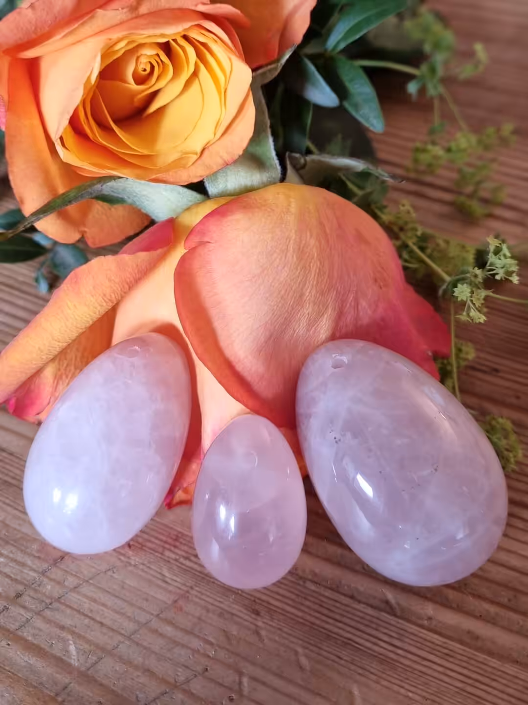 Der wunderschöne Rosenquarz eignet sich besonders als Einsteiger-Stein für zartes Beginnen und Schoßraum-Heilung. Den rosaroten Quarz gibt es für dich auch im XL-Set, wenn die Yoni noch nicht halten mag und kann, wenn du gerade erst vaginal geboren hast oder wenn FRAU es einfach groß mag.
